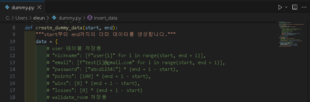 # 더미 데이터 생성 함수