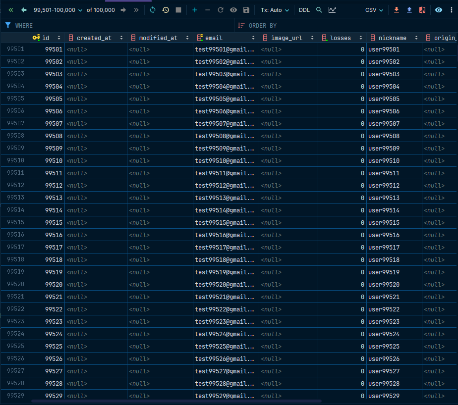 다음에는 Python 코드를 통해 생성한 더미 데이터를 사용해 Spring boot Application에서 Query 성능 테스트를 진행한 내용을 기록할 예정이다.