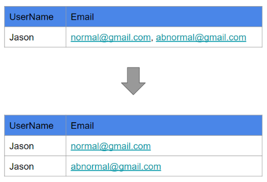첫 번째 테이블은 한 user에게 email 주소가 두 개 들어가 있다.
