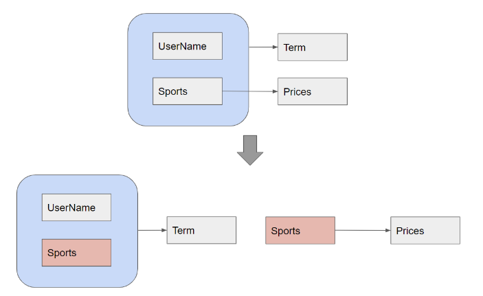위 테이블을 보면 UserName과 Sports가 Term과 연관되어 있다. UserName은 여러 개 있을 수도 있고, Sports도 여러 개 있을 수 있으므로 둘이 묶여야 Term이 정해진다.