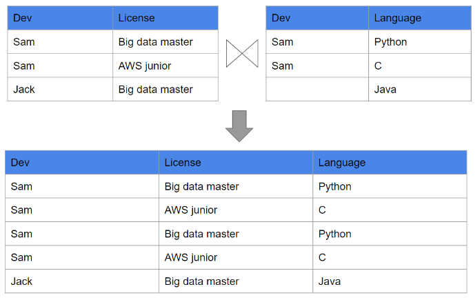 - 조인 종속성 : 4차 정규화 된 테이블을 Join 했을 때, 정규화 이전의 table과 값이 달라지는 경우를 조인 종속성을 가졌다고 한다(Join 또는 정규화 과정에서 데이터가 손실되어 결과가 달라지는 것).
