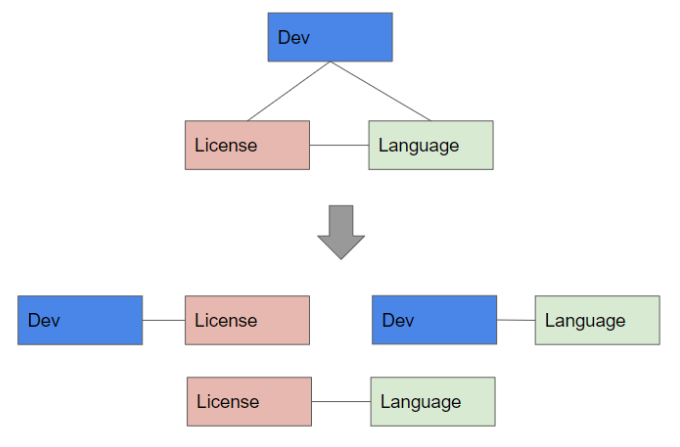 그래서 개발자를 기준으로 중복된 값을 허용할 수 있게 나눠야 4차 정규화를 만족시킬 수 있다.