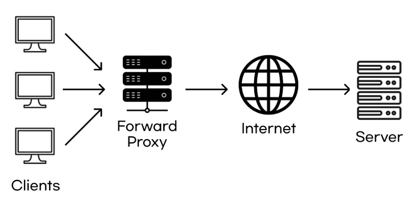 클라이언트의 요청은 포워드 프록시 서버를 통과할 때 암호화된다. 클라이언트의 ip를 감춰서 보안 효과를 내는데 본 서버에서 IP를 추적해도 포워드 프록시 서버 IP만 보인다.