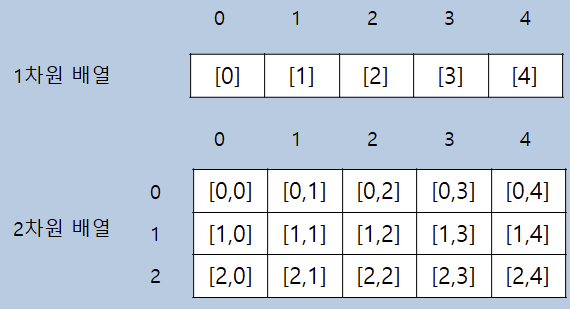 - 하나의 배열형 변수에 는 같은 타입의 변수만 담을 수 있음