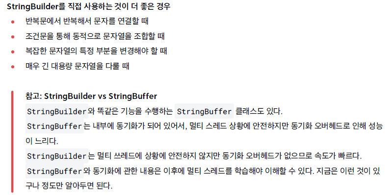 - toString() 메서드를 사용해 StringBuilder를 String으로 변환한다.