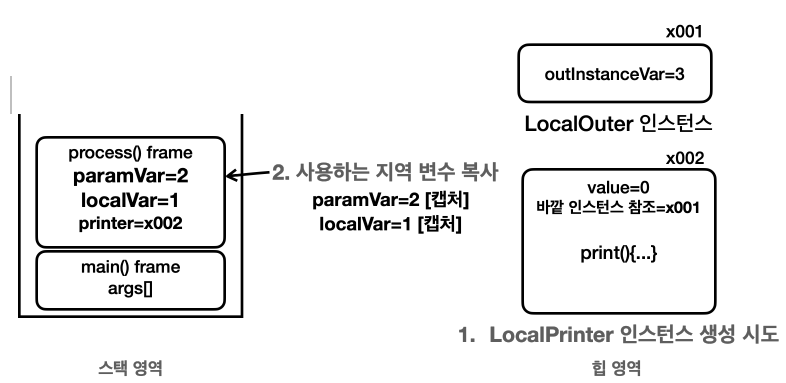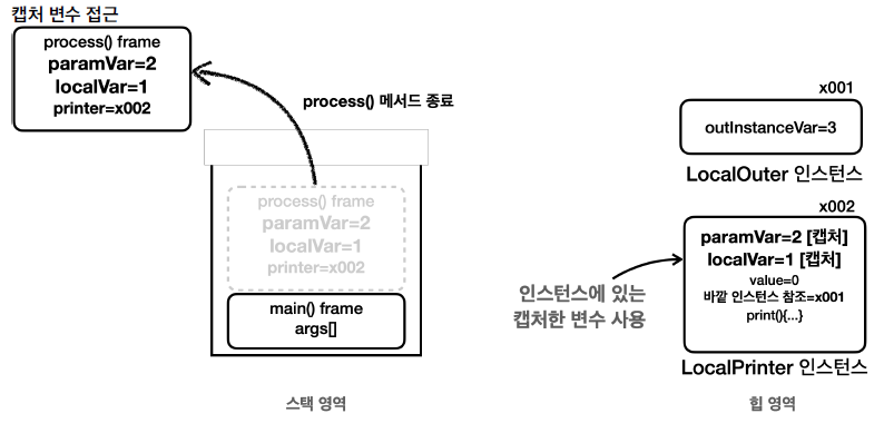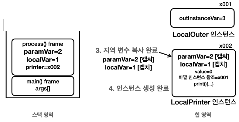 - 지역 변수의 값을 변경하면 인스턴스에 캡처한 변수의 값도 변경해야 한다.