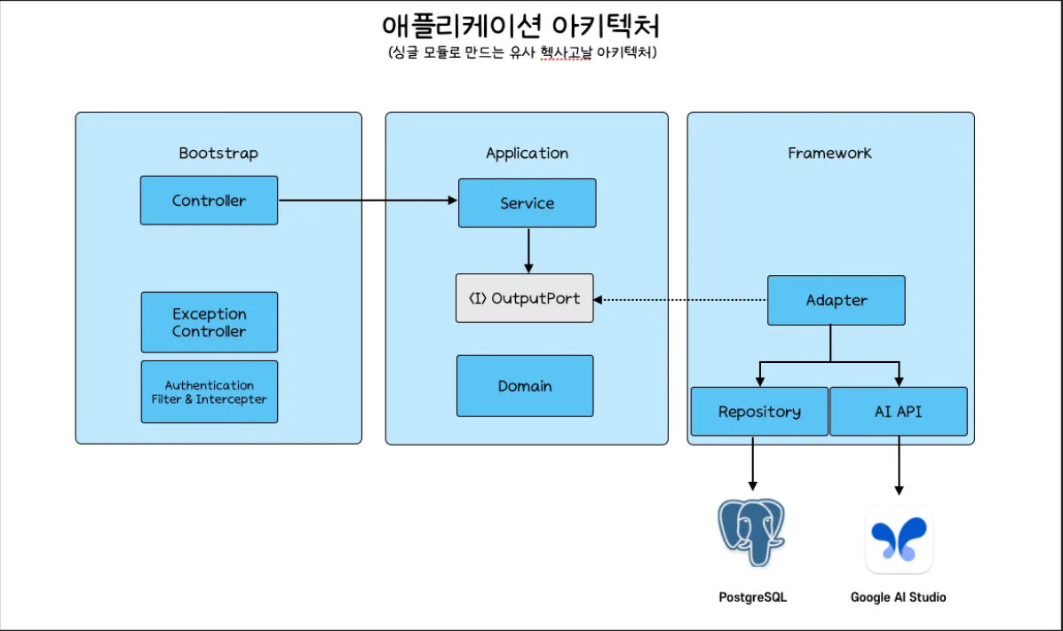 아직 기능 개발이 다 끝나지 않았지만 클린 아키텍처와 유사 헥사고날 아키텍처를 따르기 위해 사용하면 안 되는 안티패턴이나 따라야 하는 방식 등이 기존과 달라서 코드 한 줄을 적을 때도 정보를 찾고 해당 아키텍처를 구성한 팀원에게 물어보면서 진행해서 기능 개발 속도가 잘 붙지 않았다.