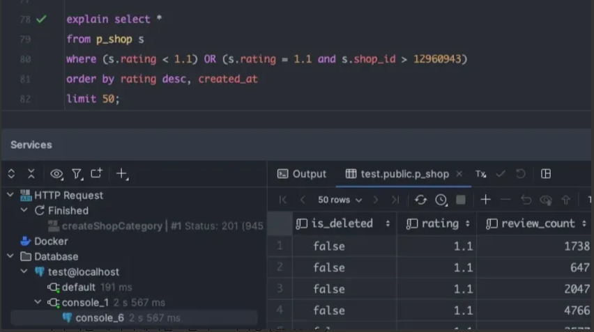 - 특정 키워드를 포함한 가게 리스트 조회에 커서 기반 페이지네이션을 사용했다.