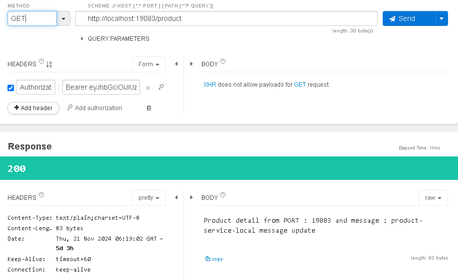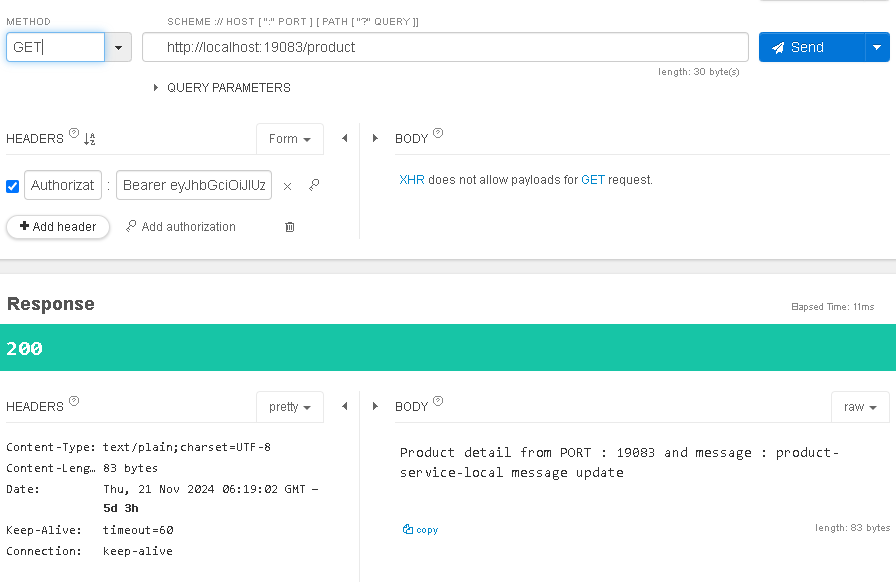 - SignIn을 통해 발급된 JWT 토큰을 헤더에 넣고 요청을 보냈을 때 인증이 성공되는 것을 확인할 수 있다.