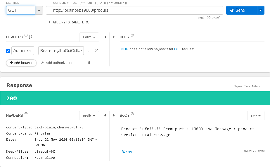 유레카 서버 → 게이트웨이 → 인증 → 상품 순으로 어플리케이션 실행 후 SignIn API를 통해 JWT 토큰을 발급 받고, 게이트 웨이를 통해 상품 애플리케이션에 요청을 보내 JWT 인증이 제대로 진행 되는지 확인