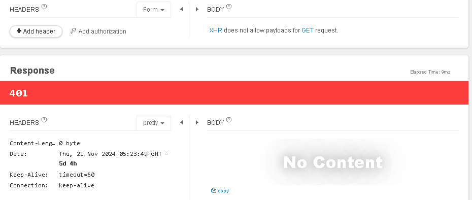 - JWT 토큰이 없는 경우 401 Unauthorized를 반환하는 것을 확인할 수 있다.
