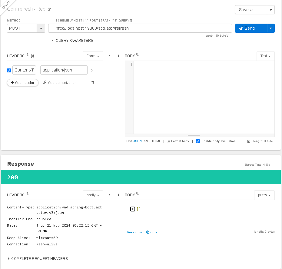 - /actuator/refresh로 post 요청을 보내 메시지 업데이트 확인