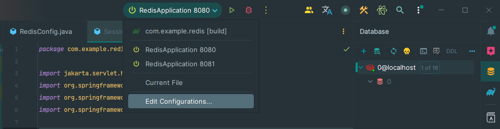 인텔리제이 상단의 Run Debug 버튼 옆의 실행 파일을 선택하는 메뉴의 Edit Configuration 클릭