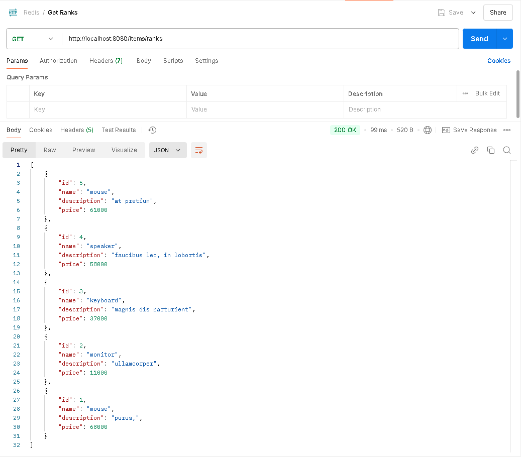 - RedisTemplate을 사용해 물품 구매시 ItemDto를 Redis Sorted에 저장하는 메서드와 구매된 상품을 순위 별로 조회하는 메서드를 만들었다.