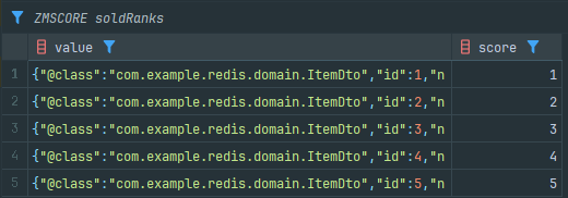 - 각 구매 항목이 Score 값과 함께 Redis에 저장된 것을 확인할 수 있다.