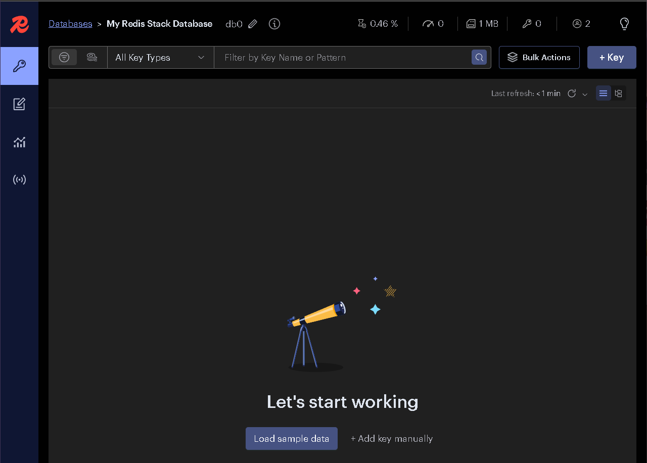 docker-compose.yml로 설정한 8001 포트로 웹에서 접속하면 Redis Insight에 접속할 수 있다.