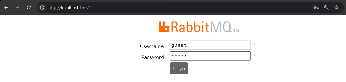 - localhost:15672에 접속하면 RabbitMQ 로그인 페이지가 나온다(초기 계정 정보 guest, guest).