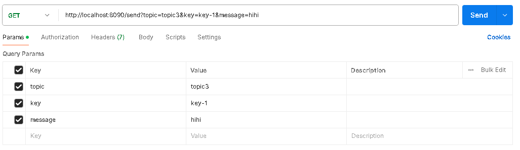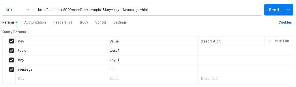 - Producer 서비스를 호출해 특정 Kafka Topic에 메시지를 전송하는 API 작성