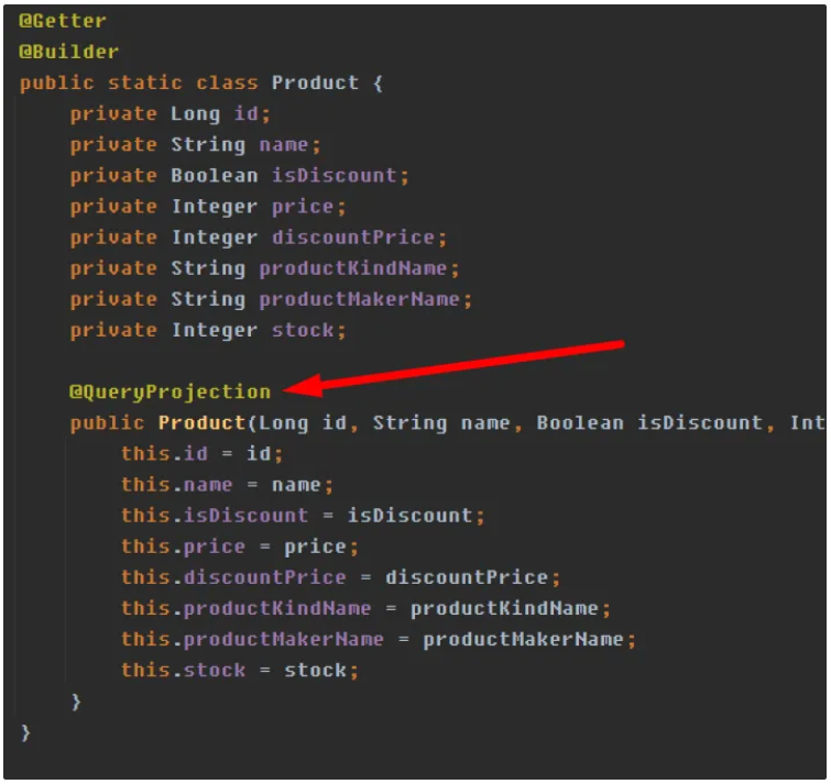 QueryProjection은 QueryDSL에서 DTO(데이터 전송 객체)를 생성할 때 사용되는 어노테이션으로 DTO에 직접 매핑할 생성자를 만들어 주며, 타입 안전한 쿼리를 지원한다.