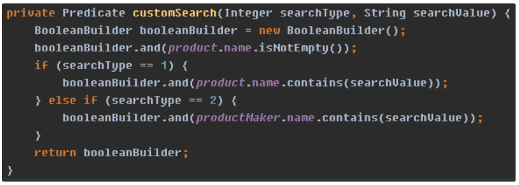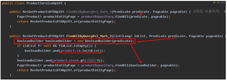 Service에서 BooleanBuilder를 선언하고 Predicate를 매개변수로 포함한다.