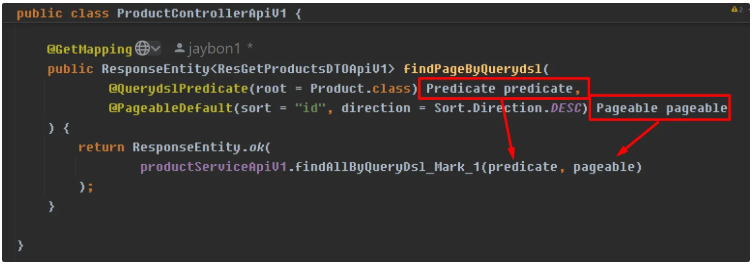 Controller에서 Predicate와 Pageable을 매개변수로 받는다.