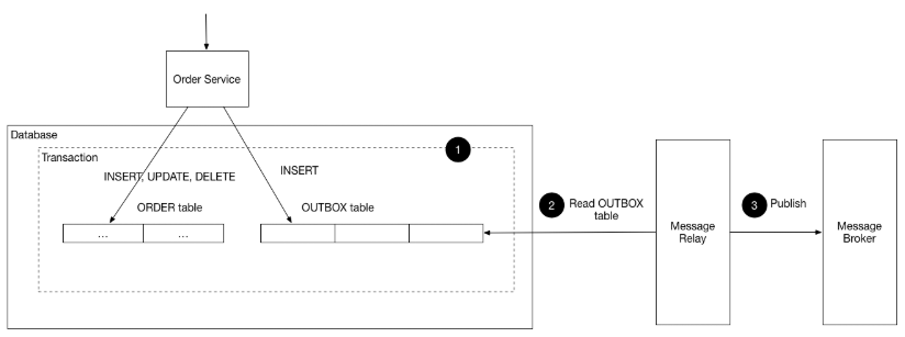 - 데이터베이스 업데이트 후 마이크로서비스가 이벤트 알림을 보내는 경우 데이터 일관성과 신뢰성을 보장하기 위해 두 작업이 원자적으로 실행되어야 한다.
