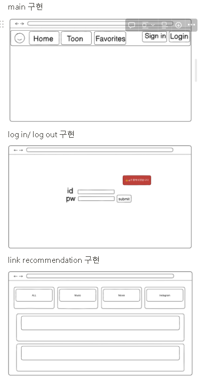 1. 와이어 프레임 작성을 위한 추천 툴에 대한 사용이 어려워서 결국 포기함