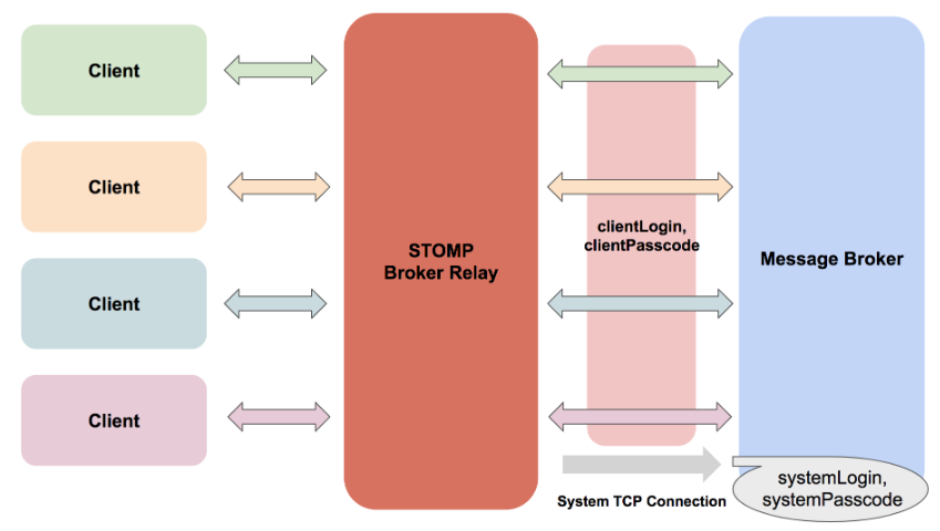 - STOMP Broker Relay는 System TCP Connection을 다시 연결해야 하며, 이 이벤트는 브로커와의 연결 상태가 변할 때마다 발생한다