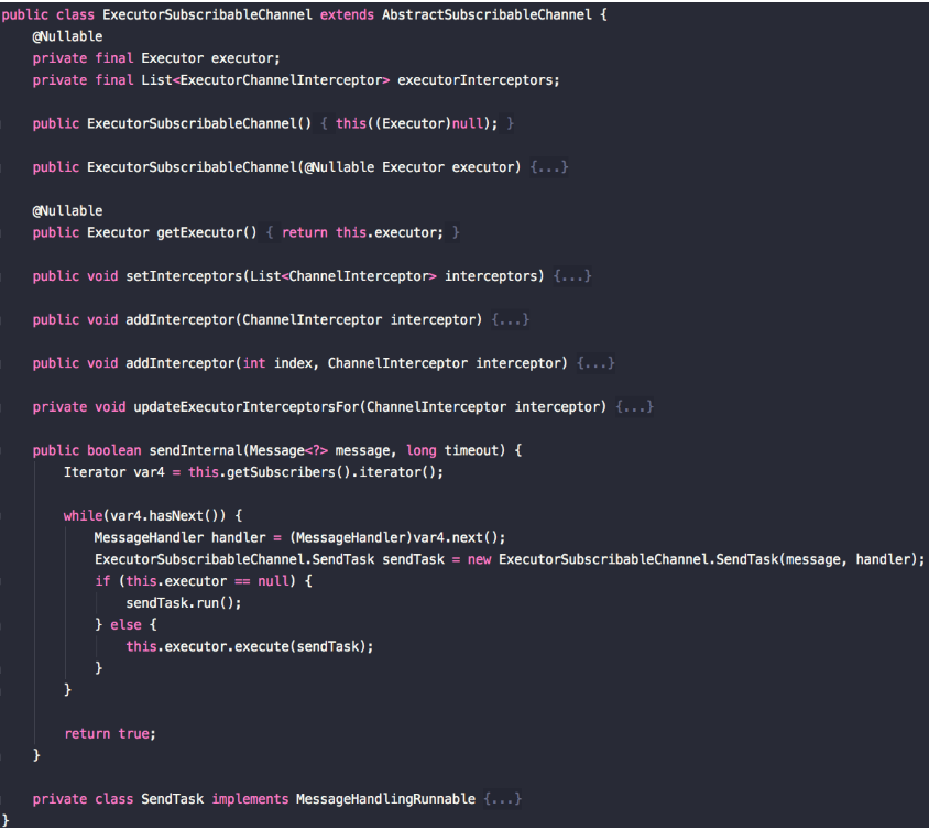 채널은 ThreadPoolExecutor에 보관되며 메시지는 서로 다른 Thread에서 처리되기 때문에, 클라이언가 수신한 메시지 순서는 clientOutboundChannel에 publication(게시)된 순서와 정확하게 일치한다고 보장할 수 없음