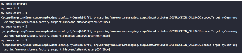 - 커스텀 스코프와 마찬가지로 스프링은 새로운 MyBean을 컨트롤러가 첫 번째로 접근했을 때 생성 및 초기화하고 인스턴스를 WebSocket 세션 Attributes에 저장함