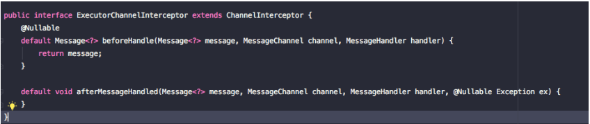 MessageHandler의 handleMessage() 메서드가 호출되기 이전과 이후에 ExecutorChannelInterceptor의 beforeHandle()와 afterMessageHandled() 메서드가 호출되는데, 실제로 각 메서드는 MessageHandler가 동작중인 Thread에서 실행됨