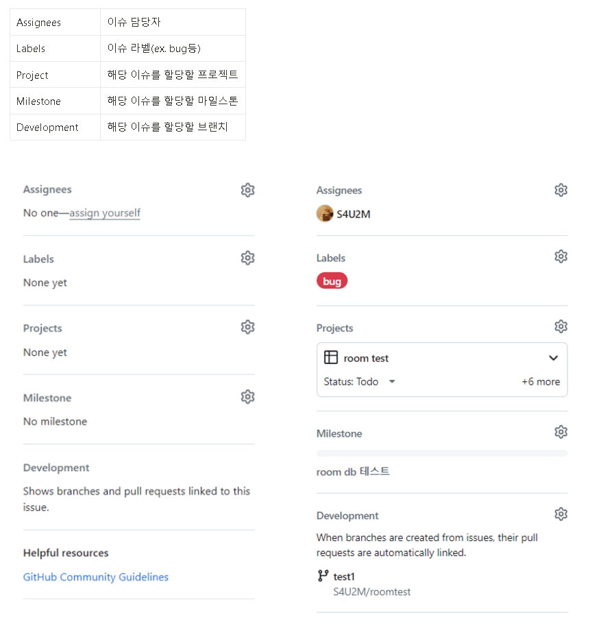 3. Assignees, Labels, Project, Milestone, Development 설정 후 이슈 생성