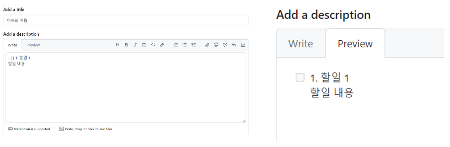- Preview를 통해 완성된 이슈를 미리 확인 가능
