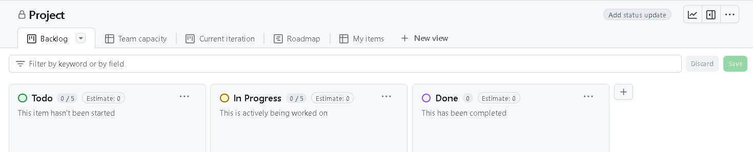 3. +버튼(Add a new column to the board)으로 보드 추가, ... 버튼(Action for column)으로 보드 관리