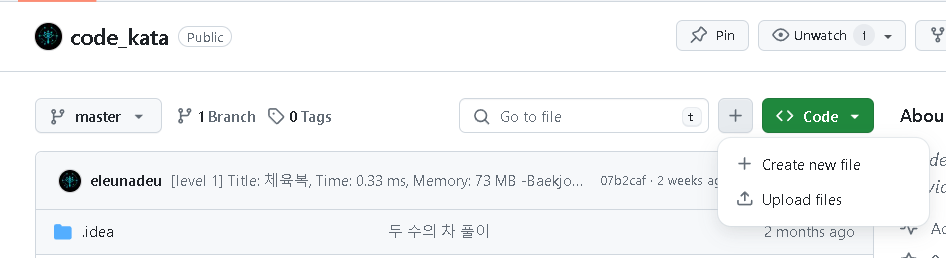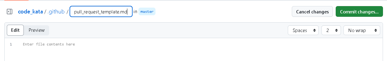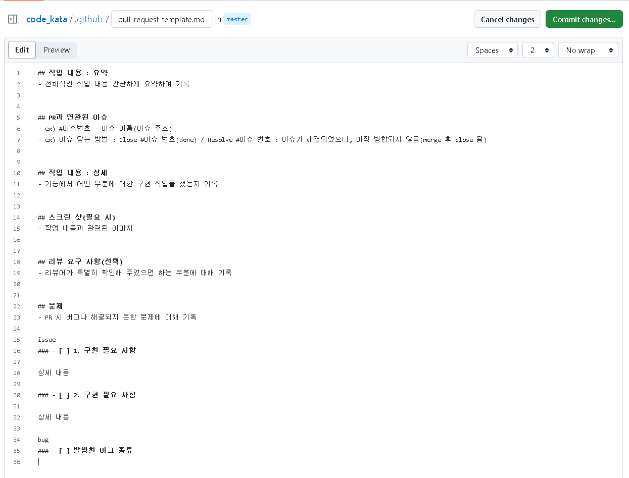 3. Template 양식 입력 후 commit changes 클릭하여 저장