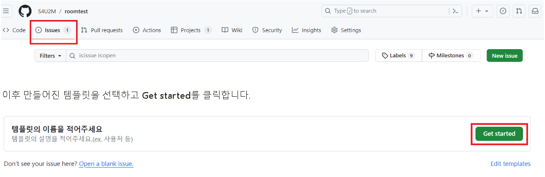 4. 이슈 템플릿 수정 Preview and edit 클릭